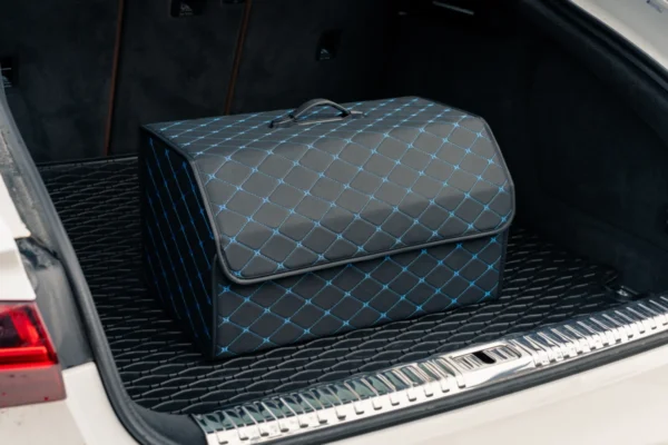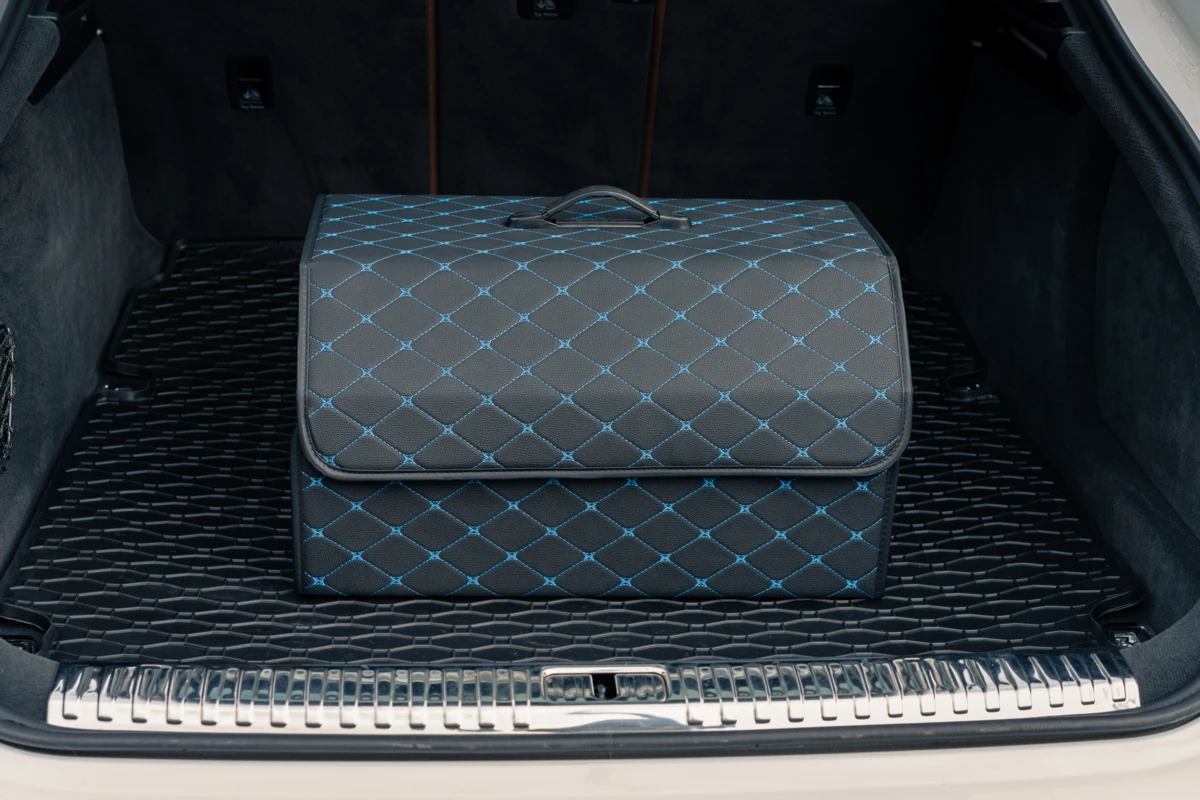 Automobilio bagažinės daiktadėžė – Diamond Line juoda su mėlynom siūlėm